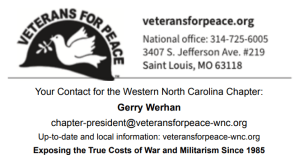 Gerry Werhan: Executive Assistant to the Executive Committee, chapter-president@veteransforpeace-wnc.org