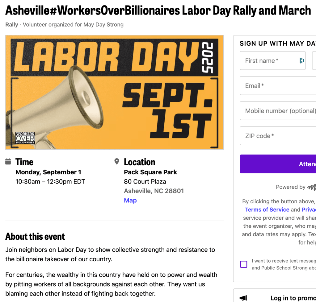 - Weekly Vigil for Peace (Every Tuesday from 4:30PM-5:30PM) at Pack Square. THIS IS THE GO-TO EVENT EVERY WEEK TO MEET SOME OF US!